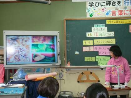 中学生になったらどんなお弁当の大きさで,どんな入れ方で,どんなバランスであればいいかを,おかずの資料を使って考えました。いろどりよくバランスよくカロリーも気にしてお弁当を作っていました。