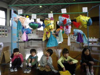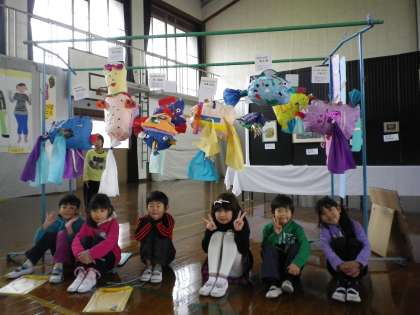 作った作品と記念撮影です。いい作品になりましたね。みんな頑張りましたね。