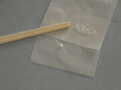 理科の「ものの溶け方」の学習で,ミョウバンの結晶を作っています。2mmほどの種結晶を苦労して釣り糸に結び付けました。大きく育つか楽しみです。