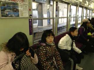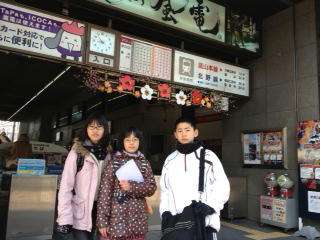 6年生が卒業遠足の市内めぐりに出発しました。大宮から嵐電に乗り,龍安寺に向かっているグループです。