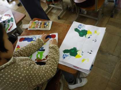 先週の図工で写した絵が,何に見えるか考え,作品に仕上げました。友達と意見を言い合いながら,楽しく描いていました。