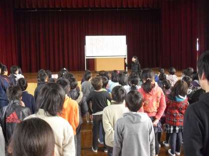 全校合唱の練習をしました。これも6年生を送る会で歌います。ご来校ください。