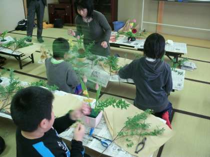 地域の方を講師にお招きして華道教室を行いました。子ども達は生け花に初めて挑戦する子が多く,花器や花の正面を考えて生けるということなどを丁寧に教えてもらいました。