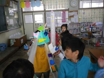 今日は,箱を仕上げました。中から出てくるものに合わせて,箱に何をつけたらいいかよく考えていましたね。