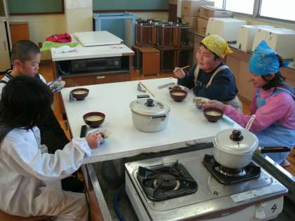 上手くいかない部分もありましたが,班で協力して楽しく料理することができました。この経験を生かして他の料理にもチャレンジして欲しいと思います。
