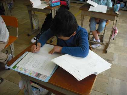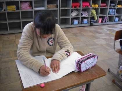 今日は 春のうたの詩を 視写したあと