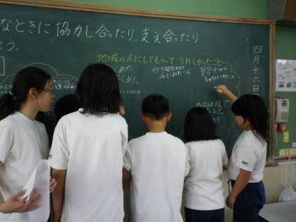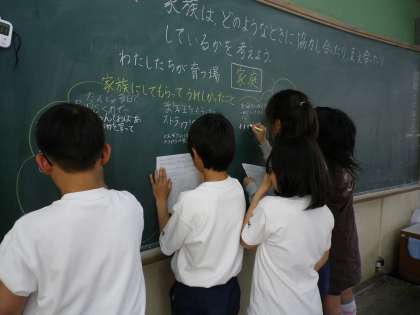 5年生から始まった家庭科学習。子どもたちは「何か作ってみたい!」と意欲的です。今は「見つめよう家庭生活」を学習しています。今日は,家族や地域の人にしてもらってうれしかったことを出し合いました。