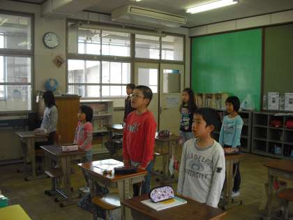 今朝は 「春のうた」を群読して 「はじめの一歩」を歌いました。
