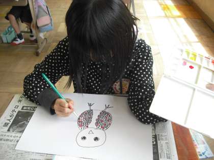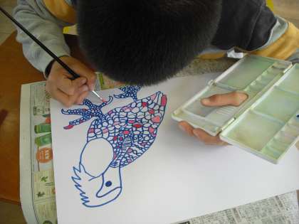 自分の描きたい鳥を選んで 羽の模様をつけていきます。