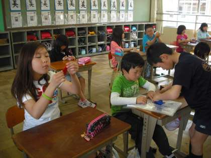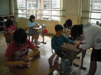 そのあと ていねいに 千羽鶴の折り方を教えてくれていました。