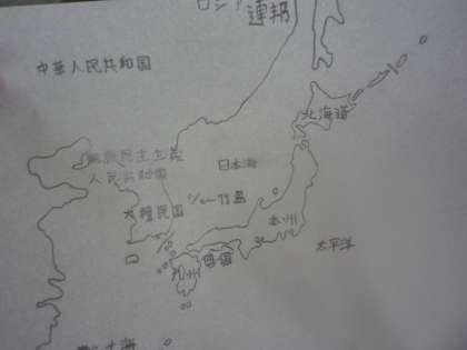 今日の社会科は,地図を写して日本のまわりの国や,今まで学んできたことを書き入れました。島の名前も,頑張って覚えています。