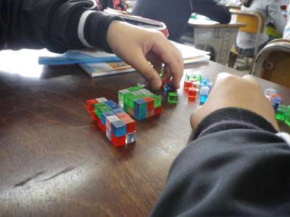 1立方センチメートルの立方体を使って,24立方センチメートルの直方体を作っています。