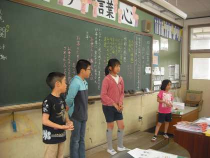 感じたことをどんなふうに音読で表現するか 自分の考えを発表しています。