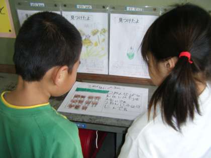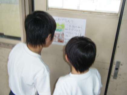 1年生に説明する,各教室の紹介カードを実際に読んで練習をしました。