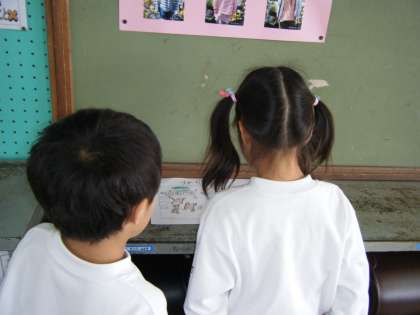 各教室の紹介カードを読む練習も頑張っています!