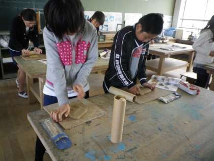 今日の図工は,ねん土です。まずは,ねん土を板状にしていきます。力がいりましたね。