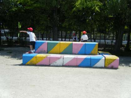 しばらくは,みんなが高い場所に居続けて,なかなかつかまりませんでした。そこで,途中から,「20数えたら陣地から降りる。」ルールを作りました。そうなると,みんなの動きが活発になり,スリルもいっぱいで,とても楽しくなりました!