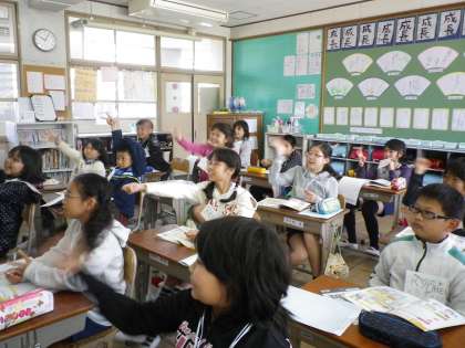 今日は,いろいろな国のじゃんけんや数の数え方を学びました。じゃんけんで盛り上がっています。