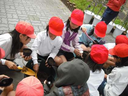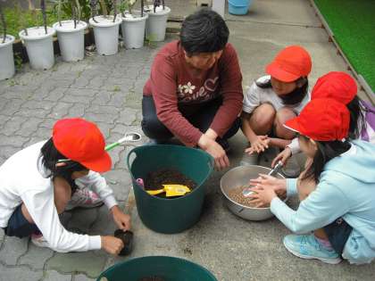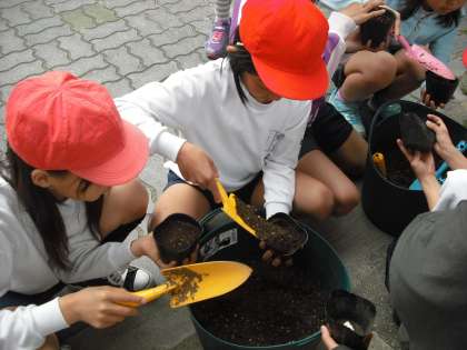 一人ずつ ポットに まいて発芽を観察します