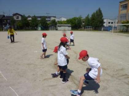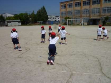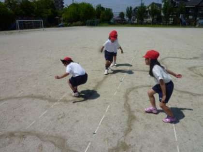 両足,片足で川に落ちないように跳び越したり,