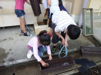 今日もお兄さんやお姉さんに優しく教えていただきながら,プランターの掃除をしました。