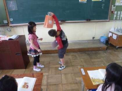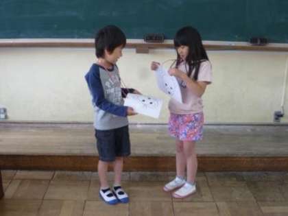 それぞれのペアによって,会話を想像し,くまさんとりすさんになりきることができました。