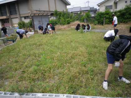 今日は,農園の草ぬきをしました。サツマイモを植えるための準備です。2枚の写真を比べると,みんなの頑張りが分かるでしょうか。