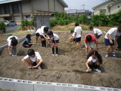 先日,雑草をぬいた農園です。きれいな畝が出来上がりました。来週中にさつまいもの苗を植えるので,今日は,大きな石や草を取り除きました。