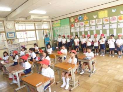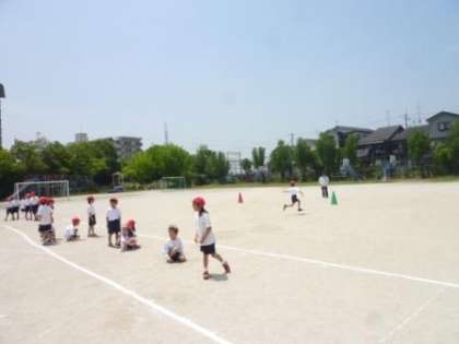 今日から,体育は2年生と合同で,「リレーあそび」をします。1回目の今日は,チームで走る順番を決めたり,バトンパスの練習をしたりしました。