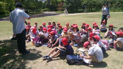 植物園のなかを1〜3年の縦割りグループでまわります。