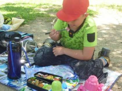 班で「いただきます」をして,お家の方が作ってくださったお弁当を食べました。