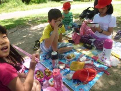 ラリーの後は,お弁当を食べました。手作りお弁当をおいしくいただきました。その後の遊び時間も,1年生から3年生まで交じり合って元気に遊びました。楽しい時間を過ごすことができました。