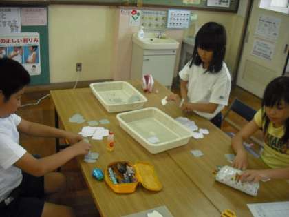 歯科検診の結果,むし歯のあった人,なかった人が何人いたか,グラフを作りました。4年生,5年生,6年生の3人のメンバーですが,テキパキと協力して作業できていました。むし歯があった人の割合も,6年生が計算してくれました。