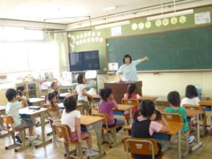 2組はどんなクラスかを,1年生の教室で今西先生が話してくださいました。