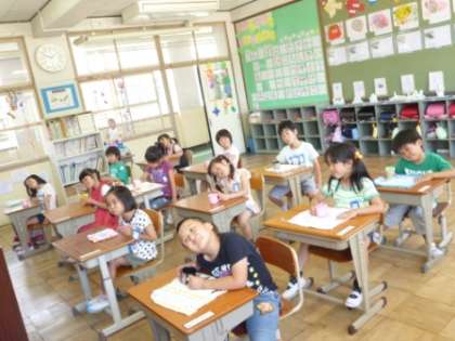 フッ素を口に入れて…少し驚いた表情をしながらも,全員歌に合わせながらできました。「成功!!」 来週からもがんばりましょう!
