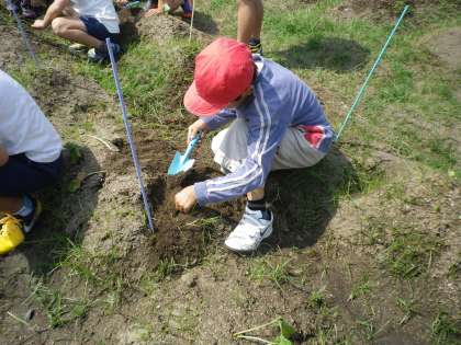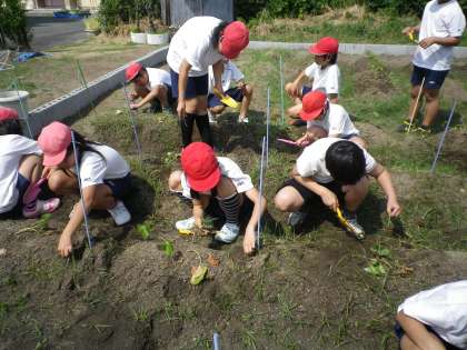 ふれあい農園に行きました。水やりをしっかりしているのですが,雑草が多くなってきたので手入れをしました。