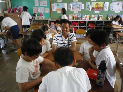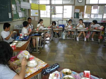 今日はALTの先生と一緒に給食を食べました。早く食べられたので,百人一首もしていました。