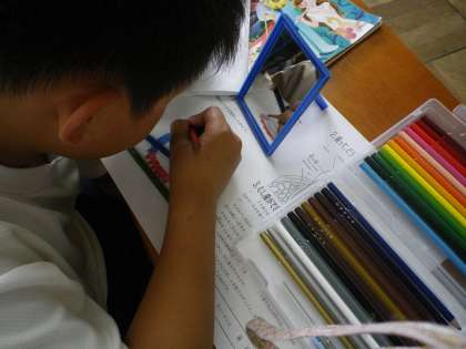保健学習で,歯のことを学習しました。永久歯か乳歯かを良く見て色塗をしています。