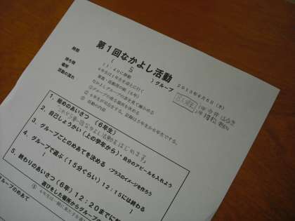 きょうは,なかよしグループのリーダーとしてのデビューです。プリントに計画をたて,メンバーの名前もすべて確認しました。初めての会議でうまくリードしてくださいね。