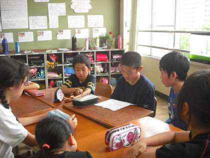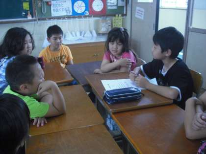 初めての活動に少し緊張気味でした。始まると,和やかな雰囲気になり一生懸命6年生は自己紹介をしていました。他の学年の人もまねをして,「こんなことが好きです。」と一言そえて自己紹介をしていました。