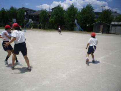 今日は6月とは思えない暑さでしたが、先月から計画を進めてきた運動会大会をしました。まずは,しっぽとりです。しっぽも係の人の手作りです。