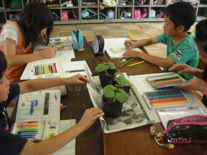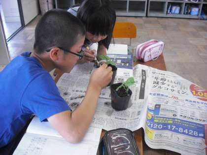 子葉と本葉の観察をして 茎たけを計っていきます。