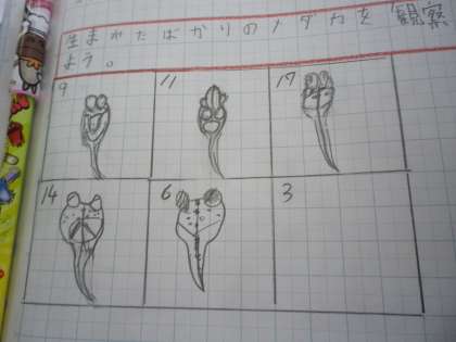 月曜日の朝,先週観察した卵からメダカの赤ちゃんが生まれていました。理科の時間に観察をしてスケッチもしました。
