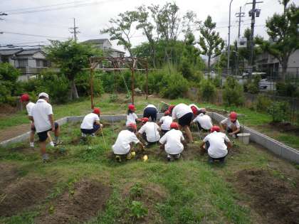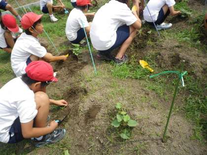 今日もサツマイモ畑の手入れをしました。雑草をしっかり根っこから抜いておかないとすぐにまた生えるので,真剣に抜いていました。