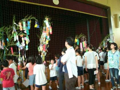 歌を元気に歌ったあとは,グループの願い事を発表しあいました。5分間の練習ではどの班も大きな声がだせていました。本番の発表では6年生はすごく緊張したようですが,上手にリードしてくれました。
