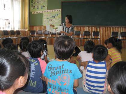 子どもたちは,夏の暑さも忘れてお話の世界に引き込まれていました。