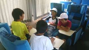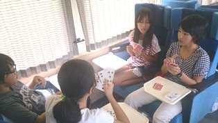 とても快適な伊勢志摩ライナーの中で,カード遊び・おしゃべりを楽しんでいます。