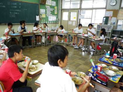 今日は,学生ボランティアの先生が来てくださったので,円になって食べました。全員の顔を見ながら食べるのも,楽しいですね。
