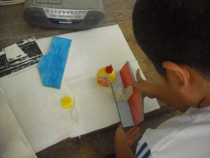 夏休み前から取りかかっていたテープカッターを,ようやく組立てに入りボンドでとめました。これから仕上の釘打ちに進みます。うまく釘を打って完成させたいです。