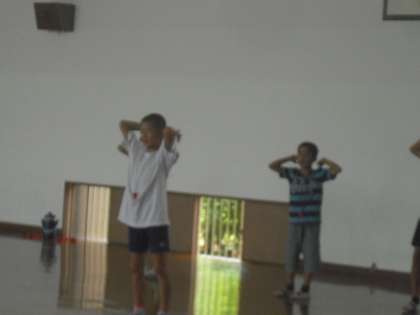 中間休みに運動会の応援団が集まって練習をしています。赤白向かい合って大きな声を出し合っていました。応援歌も考えてとても頑張っています。